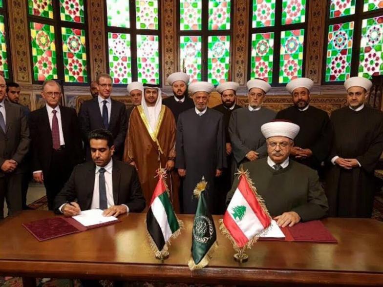 وقع الاتفاقيتين عن الملحقية.. المستشار مسلم المنصوري مدير مكتب الملحقية.. فيما وقعها عن الصندوق الشيخ زهير كبي المدير العام وعن المصرف محمد علي ضاهر المدير العام المساعد وذلك برعاية سماحة الشيخ عبد اللطيف دريان مفتي الجمهورية اللبنانية وسعادة حمد سعيد سلطان الشامسي سفير الدولة لدى الجمهورية اللبنانية.